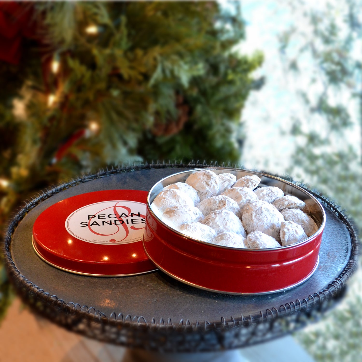 Sugar-dusted, melt-in-your-mouth butter-pecan cookies that look like miniature snowballs. 10oz tin